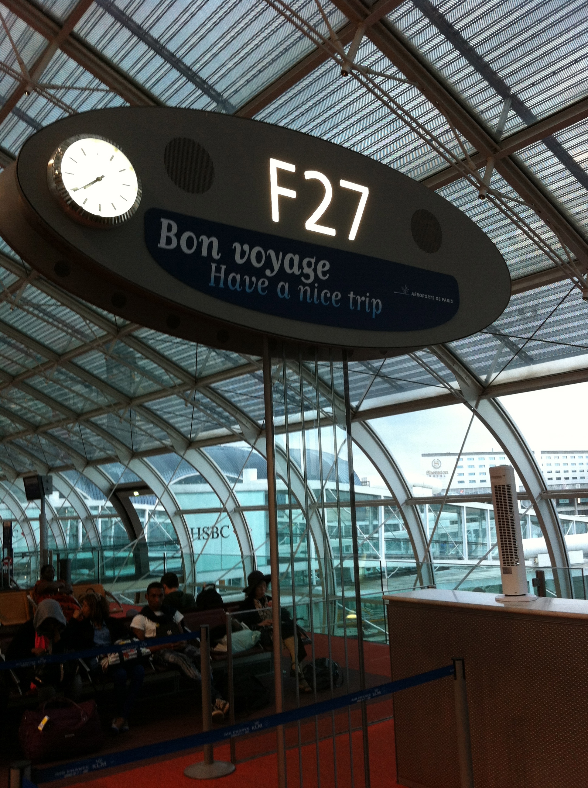 I checked the flight monitors and it read Gate 27 for Marseille.