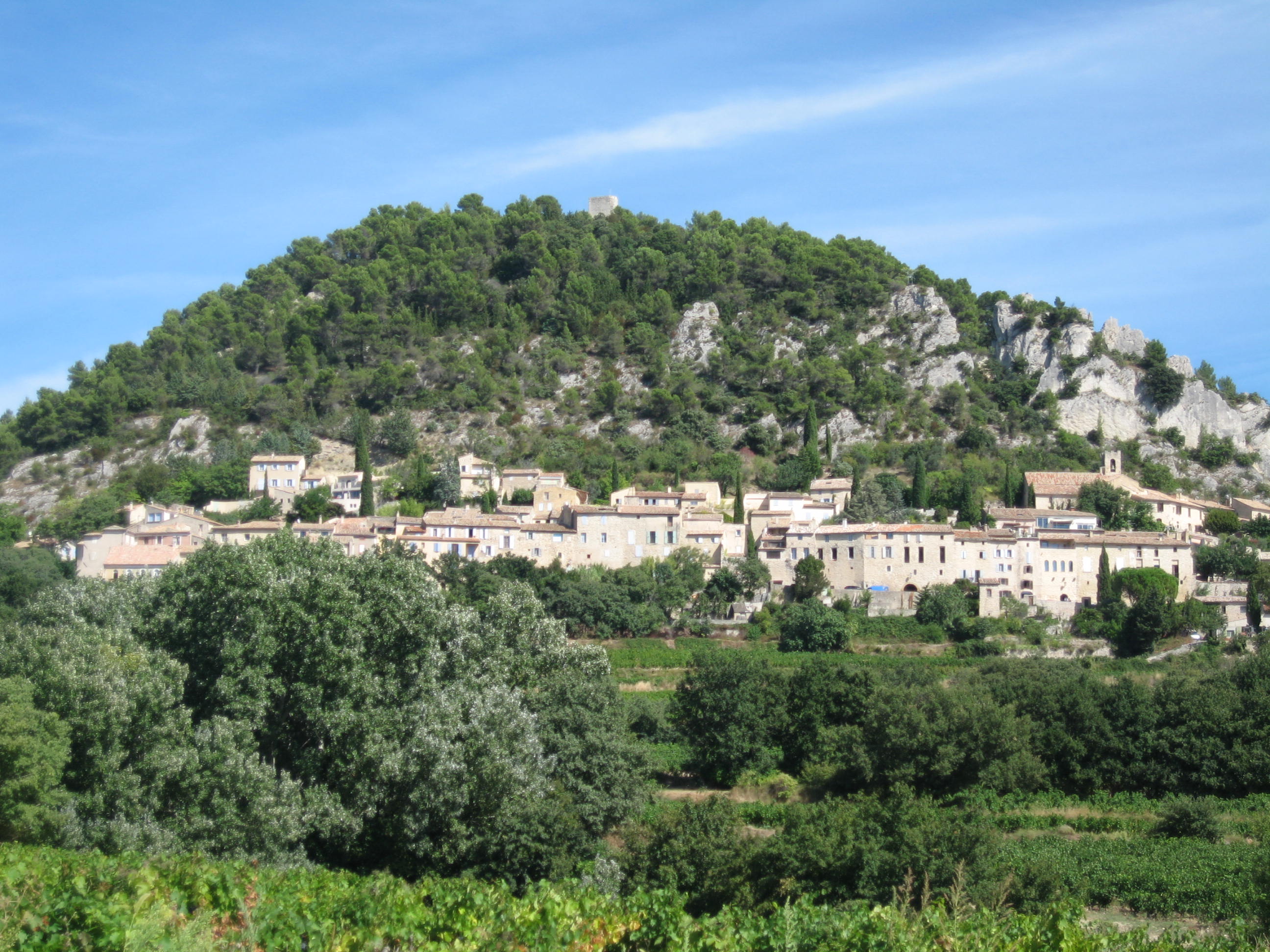 We drove back to Seguret where I had a special table set for me with little wrapped gifts of candles, soaps, writing journal and cards.  Very sweet and thoughtful.  I was drawn in immediately by the beauty of this historic village. I went onto his Terrace.  It was a little cool out, maybe 60 degrees.