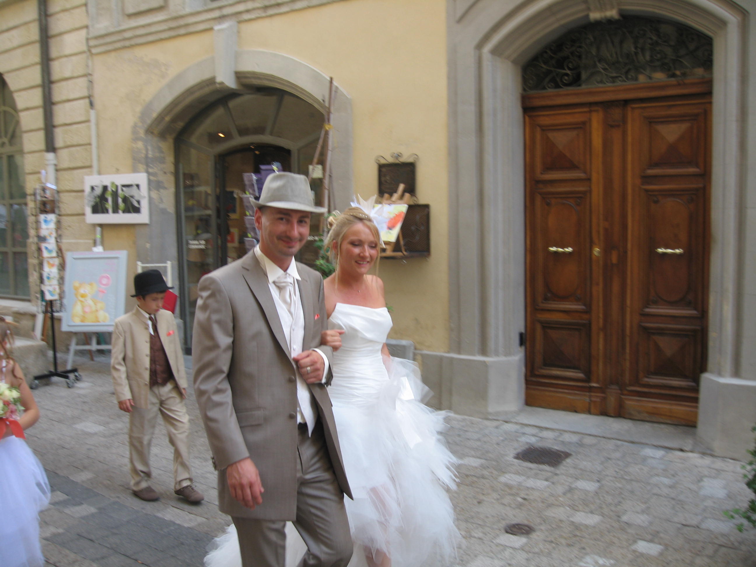 We decided to go to the center of Uzes. Uzes has a beautiful town center with a big piazza and fountain, and lots of little shops and restaurants. We saw horse-drawn buggies making their way down the narrow streets, and also were delighted to see a wedding procession coming toward us. Everyone looked so beautiful. I actually had to run down the street to get in position to get some photos.